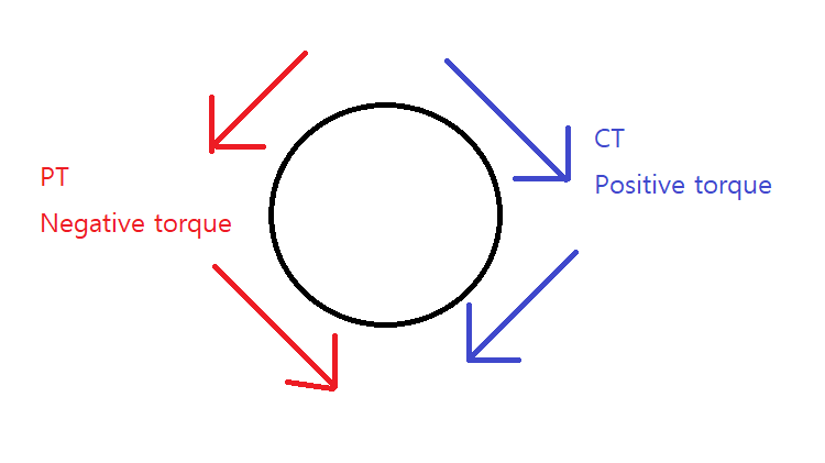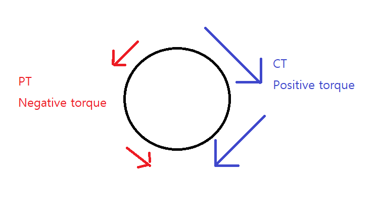 릴레이의 동적부분에서 PT와 CT는 각각 반대반향의 토크를 제공하기 때문에