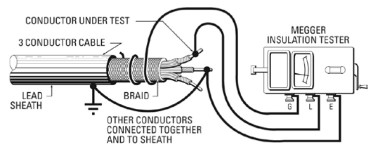 The surface leakage is basically a resistance that is in parallel with the true insulation resistance of the material being tested. By using the guard terminal, and performing the ‘three terminal test’, the surface leakage current is ignored. This may be important when high values of resistance are expected such as when testing high voltage components like insulators, bushings and cable. These components generally have large surface areas that get exposed to contamination, resulting in high surface leakage currents across them.