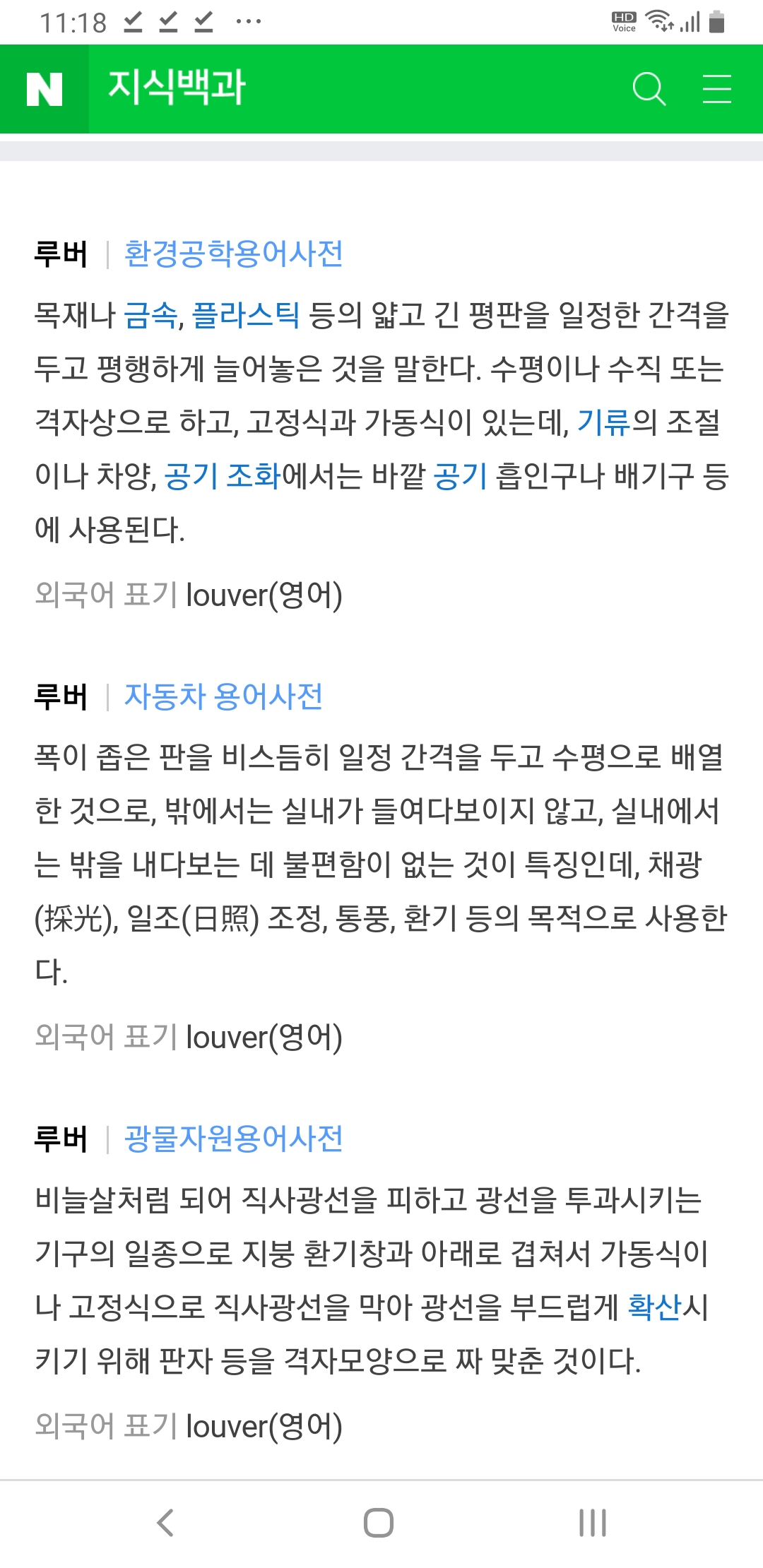 루버란 얇고 긴 평판을 일정한 간격을 두고 평행하게 둔 구조체입니다.