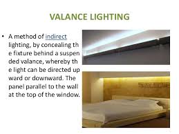 웹사이트에선 주방조명과 침대조명(소형 코브, 코니스 의 형태)을 설치하는 조명을 valance lighting 이라고 언급하고 있습니다.