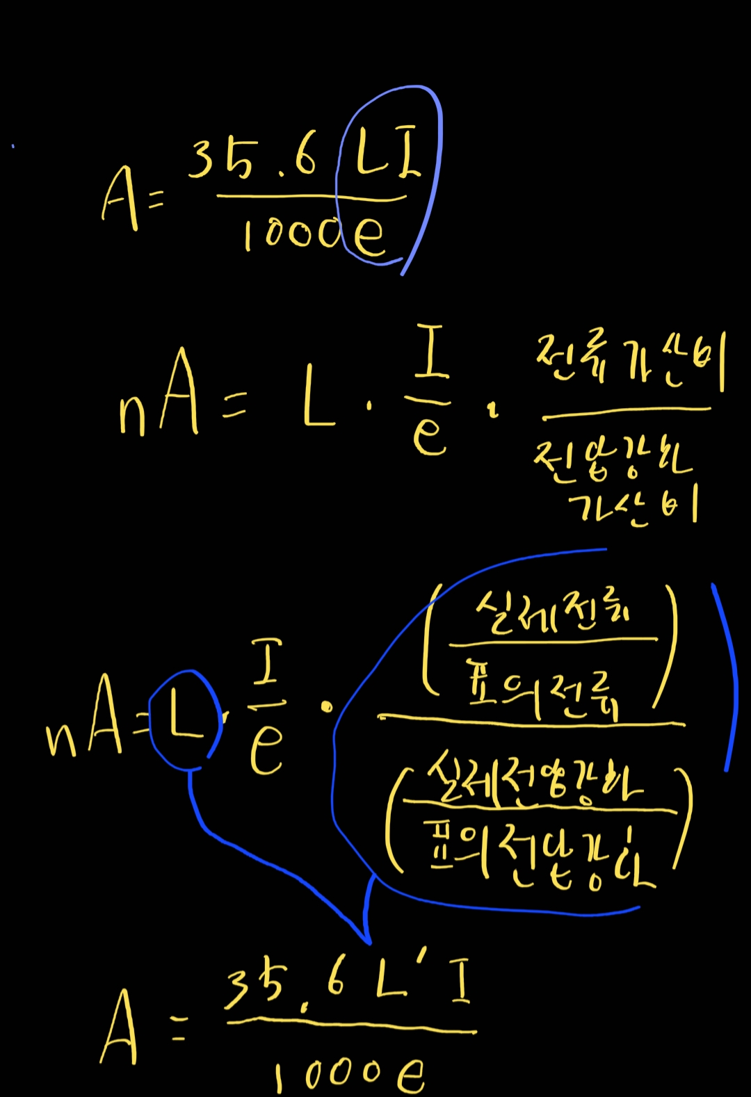 이때는 전선길이 L 을 설계상의 길이로 선정해주는게 아니라, 더 가산해주어야 합니다.