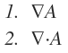 답은 2번의 발산은 미분이 아닌 '한 점에서 벡터가 나가는 정도' 를 연산하는 기호라는것 입니다