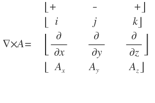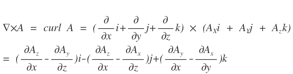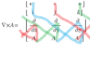 벡터의 회전은 컬 이라고 부르고, 나블라와 벡터의 외적으로 표기합니다.