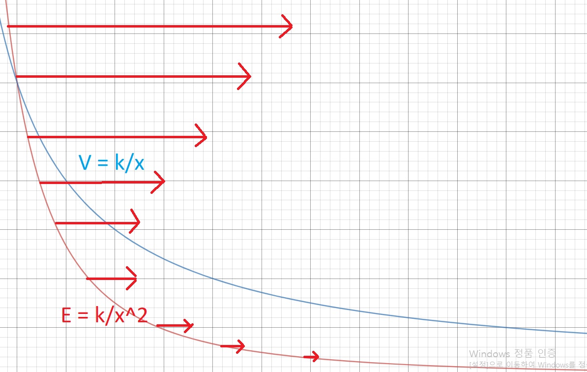 사실 전계는 모두 벡터이고, 그래프는 사실 임의의 점에서의 벡터의 크기를 선으로 이은 것입니다.
